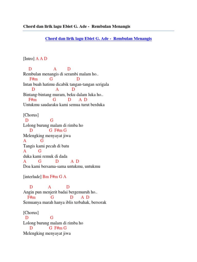 Chords For Kunci Gitar Atau Chord Lagu Rembulan Rembulan